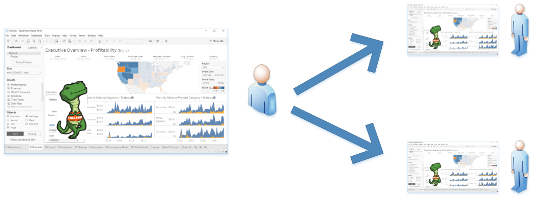 The easiest way to share an extension with others is to share the workbook that contains the dashboard extension. If the extension is hosted on web site that is accessible and the extension is using HTTPS protocol, viewers of the dashboard will be able see and use the extension. However, if the users do not also have access to the dashboard extension manifest file (.trex), they will not be able to add the extension to other dashboards or to other workbooks.