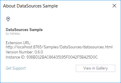 PermissionValidation.ts:26 Extension (name = DataSources Sample, ID = com.tableau.extensions.demo.local) is missing required permission: full-data
